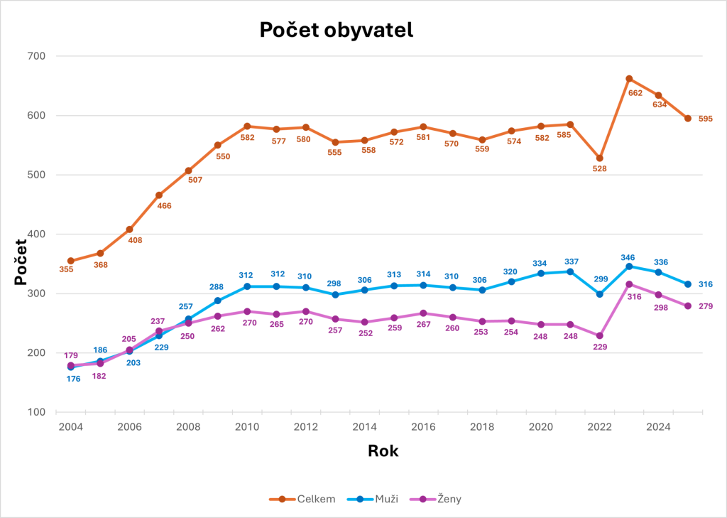 | Počet obyvatel: 595 (k 1.1.2025) | Kanalizace (ČOV): Ano |